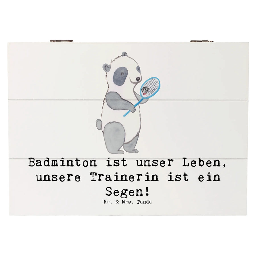 Die wunderschöne Holzkiste mit dem Motiv "Badminton Trainerin" von Mr. & Mrs. Panda ist das perfekte Geschenk für jede Trainerin! Diese stilvolle Kiste sorgt nicht nur für Ordnung, sondern bringt auch ein Lächeln aufs Gesicht. Sie ist ideal als Aufbewahrungsort für all die wertvollen Schätze, die deine Trainerin gesammelt hat – sei es für Erinnerungen an besondere Momente, Fotos oder sogar kleine Geschenke aus der Mannschaft.