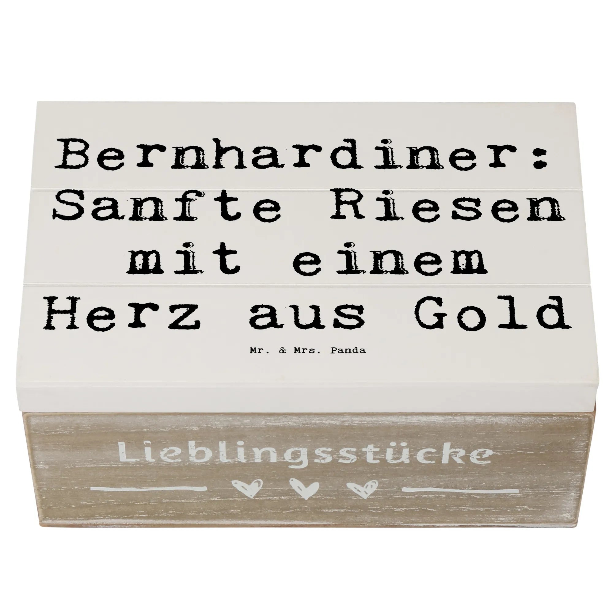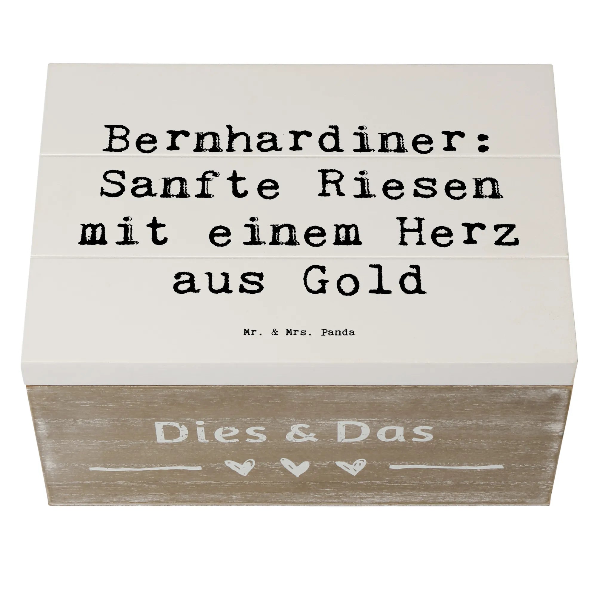 Mit der zauberhaften Holzkiste von Mr. & Mrs. Panda mit dem speziellen Motiv "Bernhardiner: Sanfte Riesen mit einem Herz aus Gold" schaffst Du ein ganz besonderes Erinnerungsstück! Diese wunderschöne Kiste ist nicht nur praktisch, sondern auch ein toller Hingucker in jedem Zuhause. Ob als Aufbewahrungsbox für wertvolle Schätze, als Geschenkbox für besondere Anlässe oder einfach als liebevolles Deko-Element – diese Holzkiste ist vielseitig einsetzbar und bringt Freude in jeden Raum.