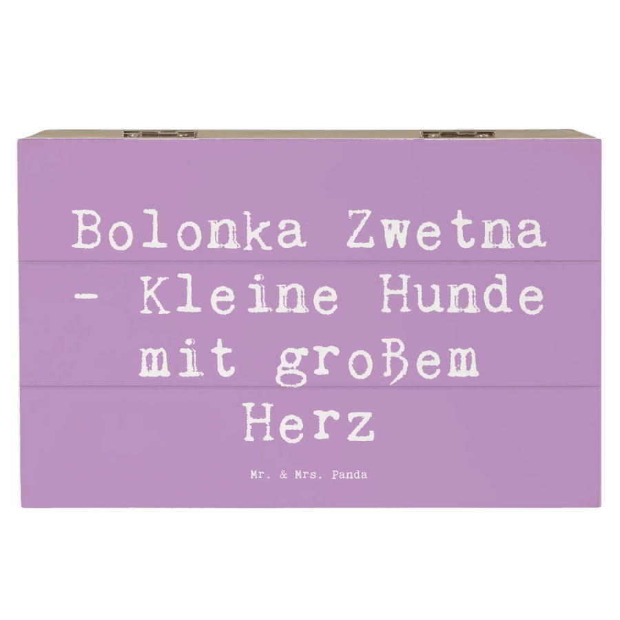 Die Holzkiste "Bolonka Zwetna" von Mr. & Mrs. Panda ist das perfekte Geschenk für alle Hundefans und Liebhaber dieser charmanten Hunderasse! Die wunderschöne Kiste, aus robuster Holzfaser gefertigt und liebevoll gestaltet, stellt einen verträumten Aufbewahrungsort für all deine Erinnerungen dar. Egal ob du Fotos, kleine Schätze, Geschenke oder Kindheitserinnerungen bewahren möchtest - diese Kiste bietet genau den richtigen Platz dafür!