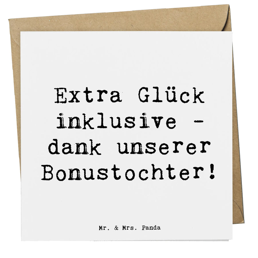 Mit dem charmanten Slogan "Extra Glück inklusive - dank unserer Bonustochter!" fängt die Karte die Essenz dieser besonderen Verbindung perfekt ein. Bonustöchter bringen nicht nur Freude, sondern auch viele einzigartige Erlebnisse in das Familienleben.