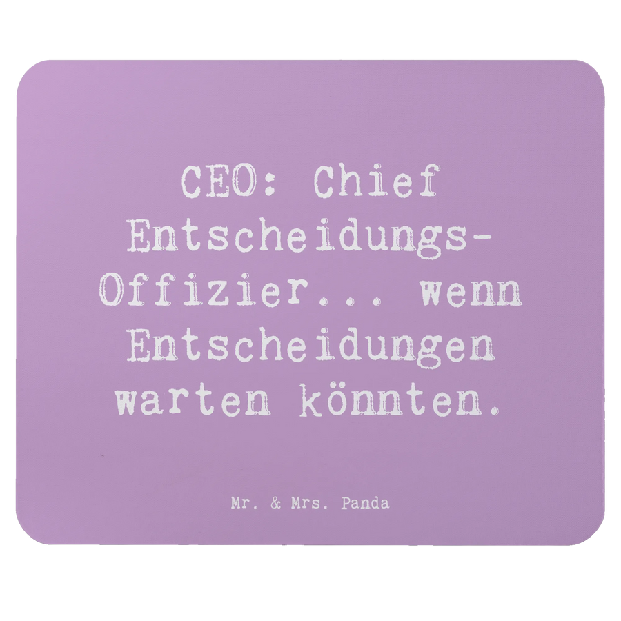 Entdecke das perfekte Geschenk für alle Geschäftsführer und Führungskräfte! Das wundervolle Mauspad von Mr. & Mrs. Panda mit dem Motiv "CEO: Chief Entscheidungs-Offizier... wenn Entscheidungen warten könnten" ist nicht nur ein praktisches Accessoire für Deinen Arbeitsplatz, sondern auch eine humorvolle Hommage an die herausfordernden Entscheidungen des Unternehmensalltags.