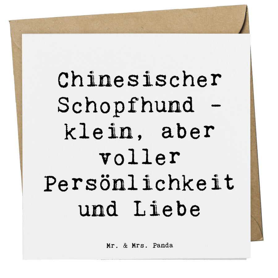 Die Deluxe Karte mit dem Motiv "Chinesischer Schopfhund" von Mr. & Mrs. Panda ist das perfekte Geschenk für Hundefreunde und Liebhaber dieser einzigartigen Hunderasse. Sie ist nicht nur ein echter Eyecatcher, sondern auch eine herzliche Möglichkeit, deine besten Wünsche zu übermitteln. Mit dem Slogan "Chinesischer Schopfhund - klein, aber voller Persönlichkeit und Liebe" auf der Vorderseite macht dieser Grußkarte jeden Anlass noch besonderer. Egal, ob es sich um einen Geburtstag, eine Hochzeit oder einfach nur eine nette Geste handelt, diese Karte ist immer eine gute Wahl.