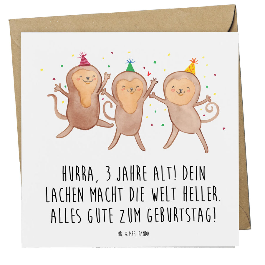 Die Deluxe Karte zum 3. Geburtstag von Mr. & Mrs. Panda ist das perfekte Geschenk für kleine Geburtstagskinder und ihre Eltern. Mit dem liebevollen Spruch 'Hurra, 3 Jahre alt! Dein Lachen macht die Welt heller. Alles Gute zum Geburtstag!' sorgt diese Karte für strahlende Augen und ein Lächeln auf jedem Gesicht.