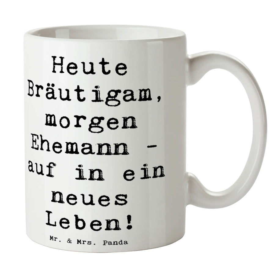 Die wunderbare Bräutigam Tasse von Mr. & Mrs. Panda ist das perfekte Geschenk zur Hochzeit! Diese hochwertige Keramiktasse mit dem liebevollen Spruch "Heute Bräutigam, morgen Ehemann - auf in ein neues Leben!" begeistert nicht nur durch ihr ansprechendes Design, sondern auch durch ihre Funktionalität.