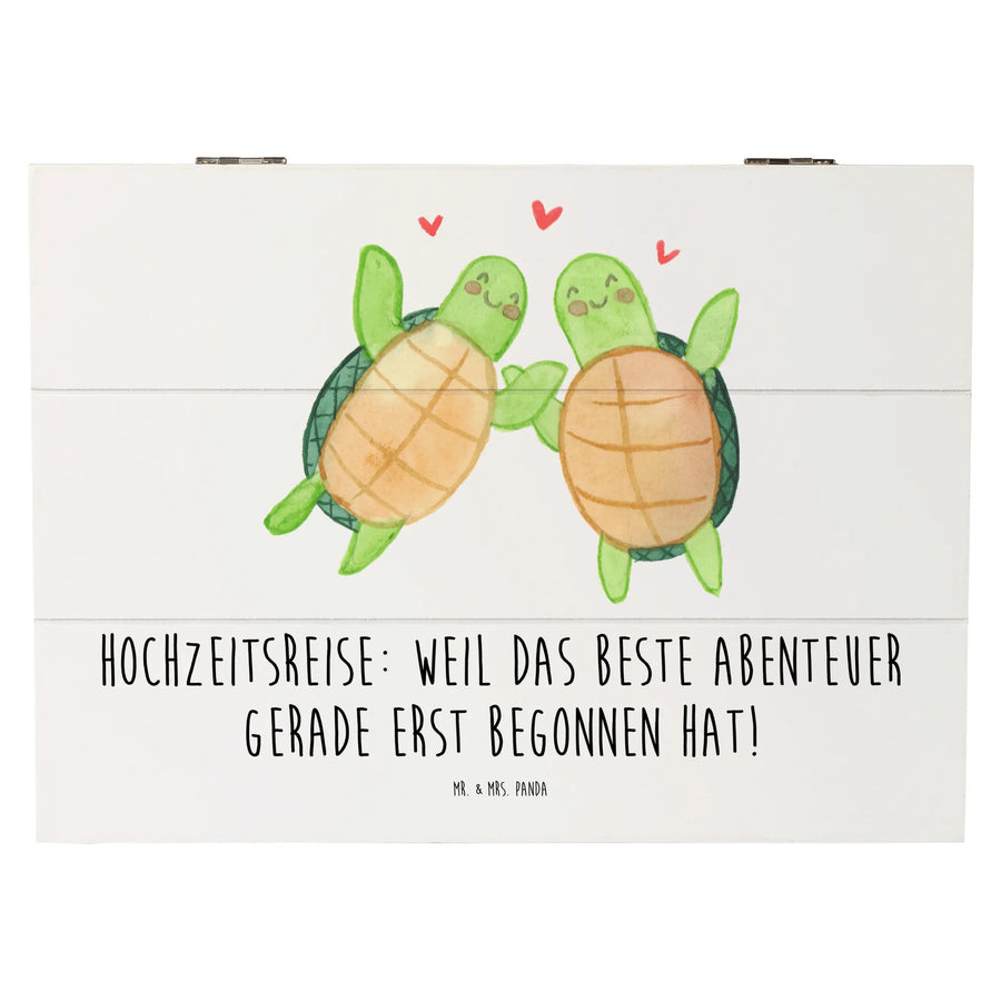 Die wunderschöne Holzkiste "Hochzeitsreise" von Mr. & Mrs. Panda ist das perfekte Geschenk für frisch Verheiratete, die ihr neues Leben als Ehepaar liebevoll festhalten möchten.