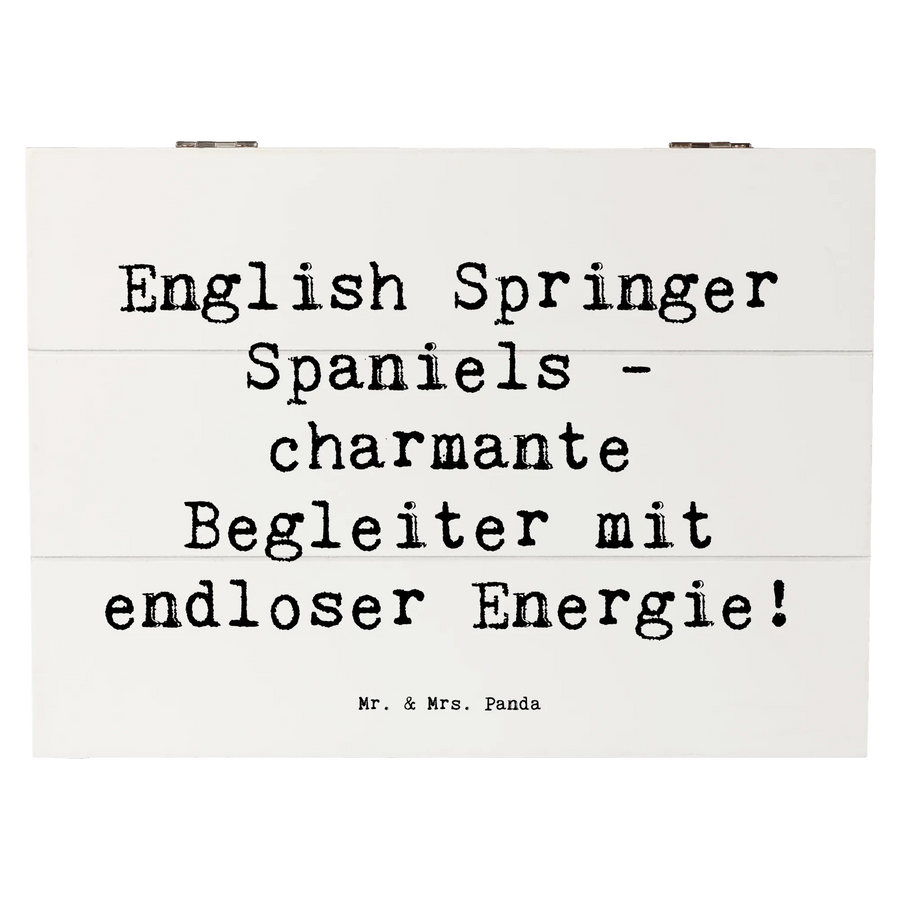 Die Kiste ist mit dem liebevollen Spruch "English Springer Spaniels - charmante Begleiter mit endloser Energie!" bedruckt, was sie zu einem ganz besonderen Geschenk macht. Jedes Motiv wurde von Mrs. Panda handgezeichnet, sodass du ein echtes Unikat erhältst.