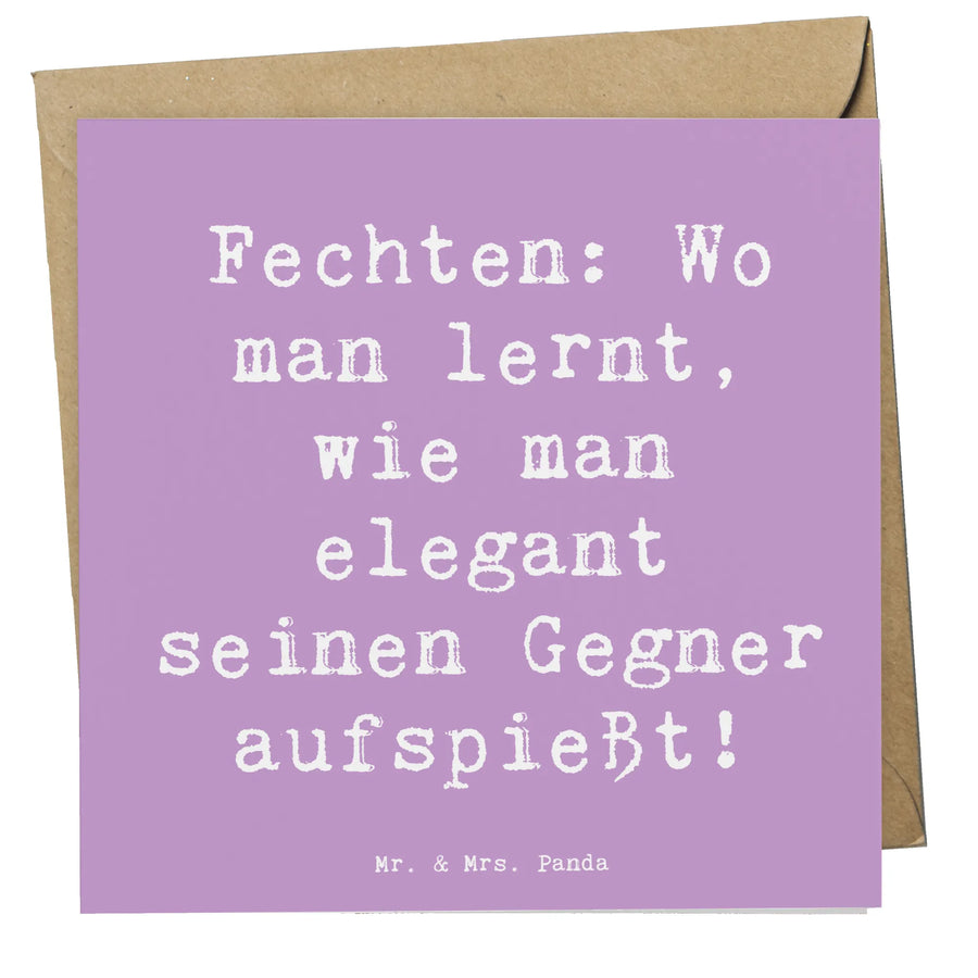 Die Deluxe Karte Fechten von Mr. & Mrs. Panda ist das perfekte Geschenk für alle Sportbegeisterten und Fechtliebhaber! Mit ihrem witzigen Spruch "Fechten: Wo man lernt, wie man elegant seinen Gegner aufspießt!" bringt sie ein Lächeln auf die Gesichter.