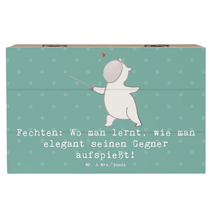 Die wunderschöne Holzkiste mit dem charmanten Motiv "Fechten" von Mr. & Mrs. Panda ist das perfekte Geschenk für alle Sportbegeisterten! 🥇 Egal, ob du ein leidenschaftlicher Fechter bist oder einfach nur die Eleganz dieses Sports schätzt, diese Schatzkiste wird dein Herz erobern.
