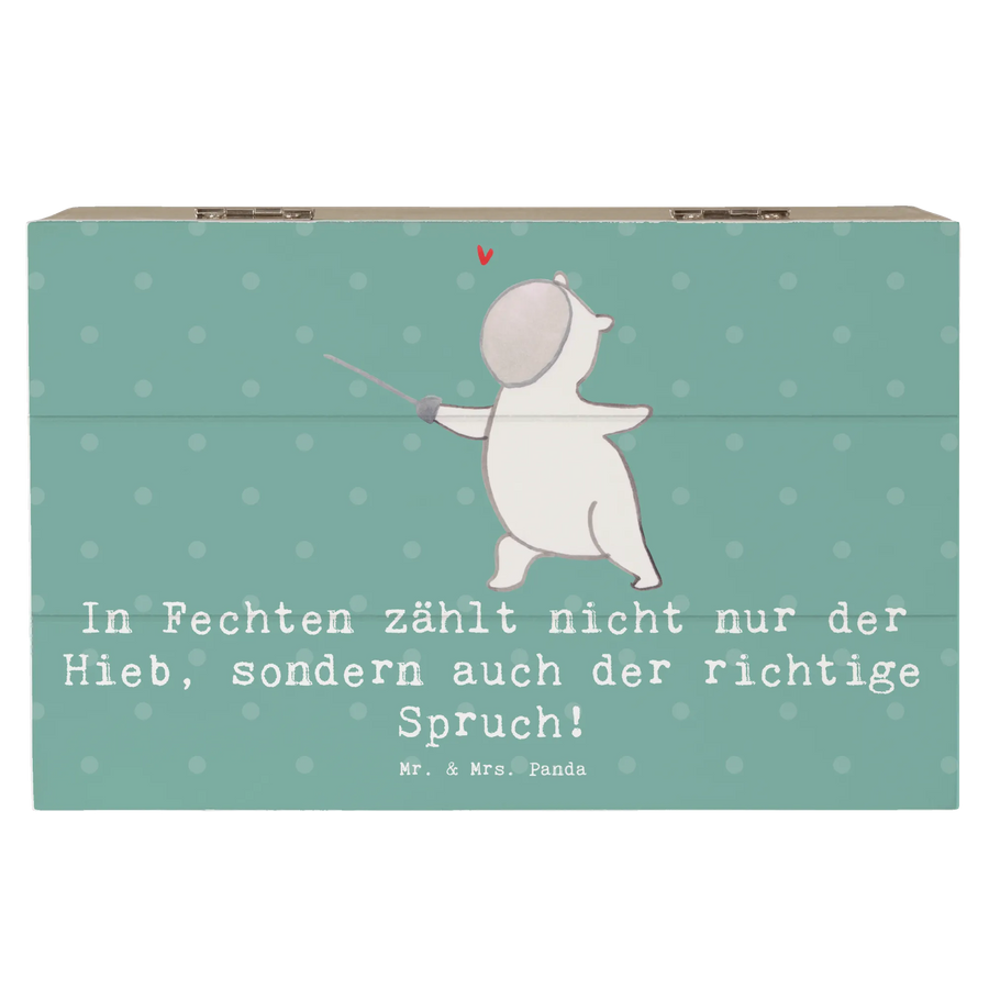 Unsere wunderschöne Holzkiste mit dem feinen Motiv "Fechten" von Mr. & Mrs. Panda ist das perfekte Geschenk für alle Sportbegeisterten und Fans dieser eleganten Sportart!