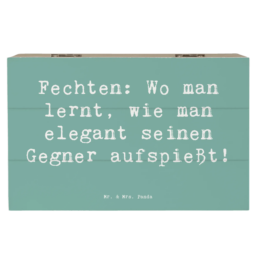 Eine wunderschöne Holzkiste von Mr. & Mrs. Panda – ideal für alle Fechtfans und Sportler, die ihre Erinnerungen stilvoll und persönlich aufbewahren möchten. Diese Holzkiste mit Deckel ist bedruckt mit dem frechen Spruch „Fechten: Wo man lernt, wie man elegant seinen Gegner aufspießt!“ und gehört zur liebevollen Sportarten-Kollektion von Mr. & Mrs. Panda.
