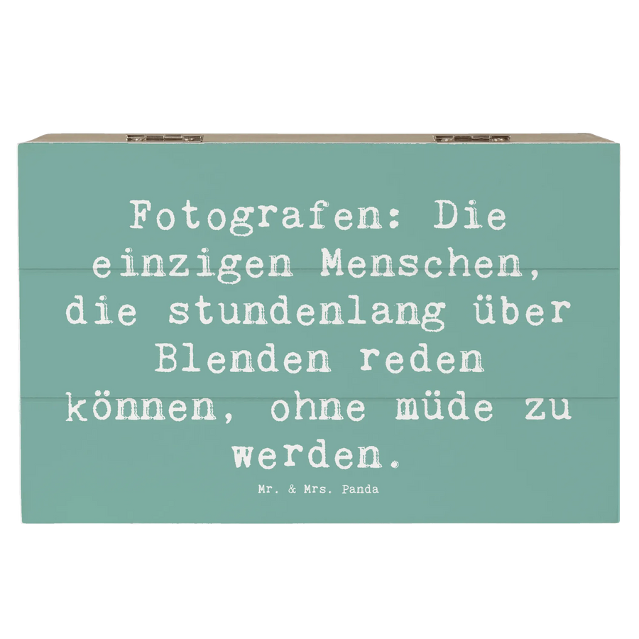 Die wunderschöne Holzkiste von Mr. & Mrs. Panda ist das perfekte Geschenk für Fotografen und all die kreativen Köpfe, die den Blick fürs Detail haben. Mit ihrem liebevoll gestalteten Motiv "Fotografen: Die einzigen Menschen, die stundenlang über Blenden reden können, ohne müde zu werden." ist diese Kiste nicht nur ein praktischer Aufbewahrungsort für Erinnerungen, sondern auch ein echter Hingucker.