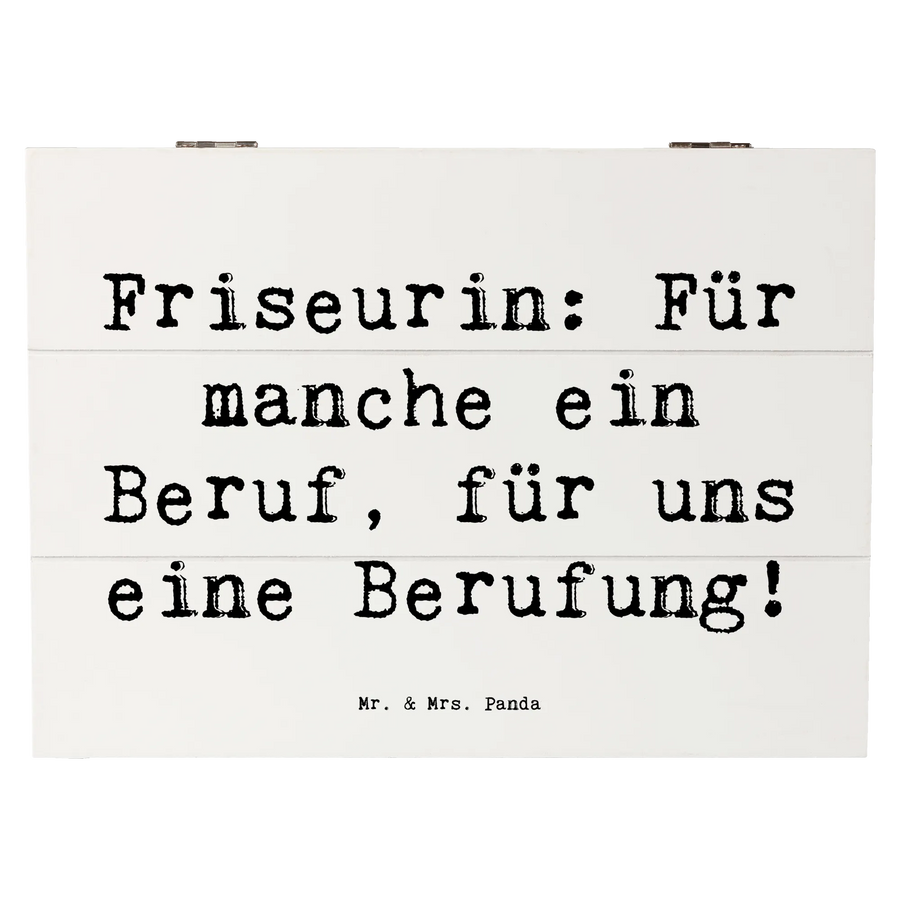 Die wunderschöne Holzkiste 'Friseurin: Für manche ein Beruf, für uns eine Berufung!' von Mr. & Mrs. Panda ist das perfekte Geschenk für alle, die in der kreativen Welt der Friseure arbeiten.