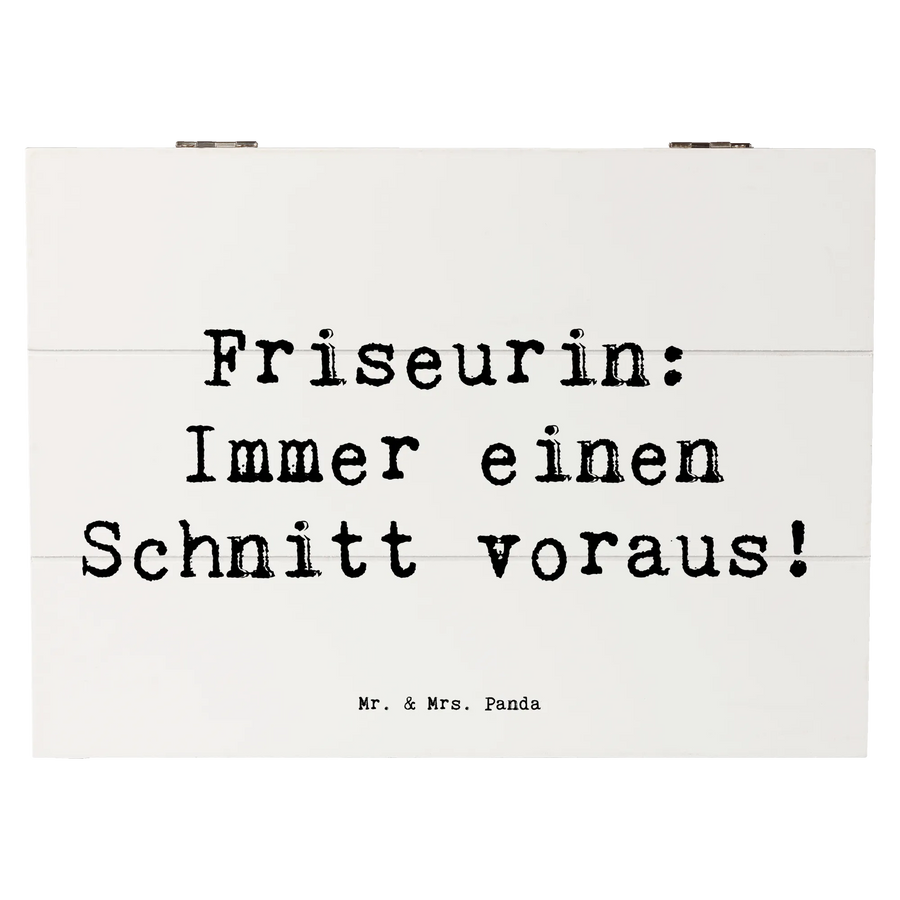 Die wunderbare Holzkiste "Friseurin: Immer einen Schnitt voraus!" von Mr. & Mrs. Panda ist das perfekte Geschenk für alle Friseurinnen und Friseure in Deinem Leben. Egal ob zur Einweihung eines neuen Salons, zum Geburtstag eines lieben Freundes oder einfach als kleine Aufmerksamkeit zwischendurch – diese Kiste ist eine charmante Möglichkeit, Wertschätzung zu zeigen!