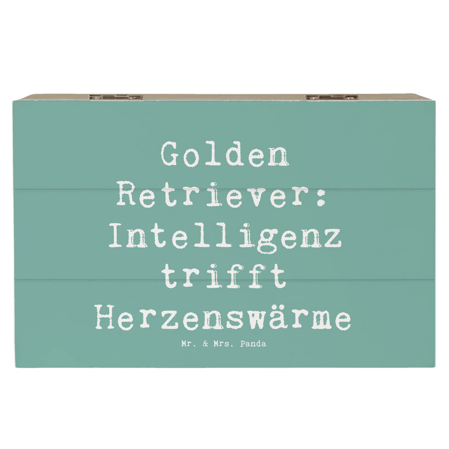 Die wundervolle Holzkiste von Mr. & Mrs. Panda ist das perfekte Geschenk für jeden Hundeliebhaber und insbesondere für Fans der treuen Hunderasse Golden Retriever. Mit dem Motto "Golden Retriever: Intelligenz trifft Herzenswärme" ist sie nicht nur dekorativ, sondern auch ein echter Hingucker in jedem Zuhause.
