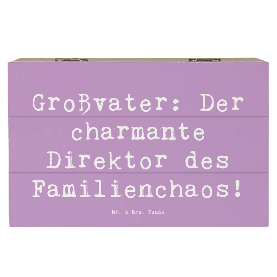 Entdecke die wunderschöne Holzkiste von Mr. & Mrs. Panda, die das perfekte Geschenk für Großväter ist! Diese Schatzkiste, ausgestattet mit dem charmanten Spruch 'Großvater: Der charmante Direktor des Familienchaos!', ist nicht nur ein aufmerksames Präsent, sondern auch ein liebevoller Aufbewahrungsort für all die wertvollen Erinnerungen, die Großeltern mit ihren Enkeln teilen.