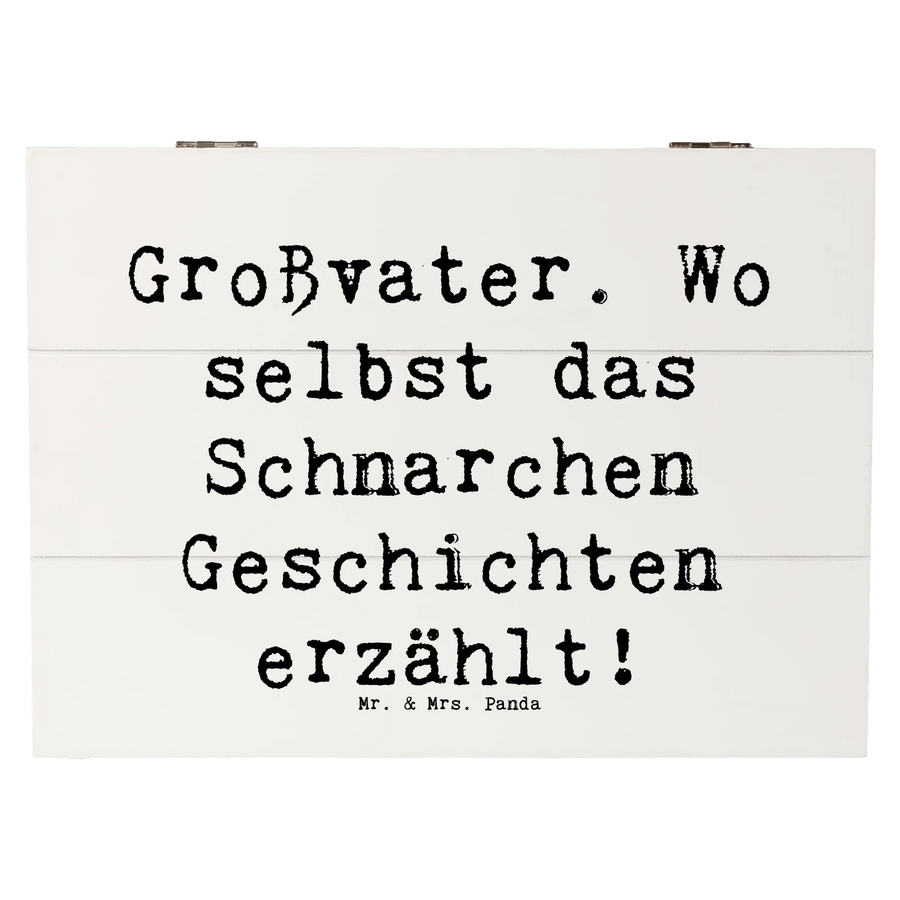 Die wunderschöne Holzkiste von Mr. & Mrs. Panda ist das perfekte Geschenk für alle Großväter, die Geschichten erzählen und ihre Familie lieben. Mit dem charmanten Spruch "Großvater. Wo selbst das Schnarchen Geschichten erzählt!" bringt diese Holzkiste nicht nur einen Hauch von Nostalgie in jeden Raum, sondern dient auch als stilvolle Aufbewahrungsbox für all die kleinen Schätze und Erinnerungen, die jeder Großvater hegt.