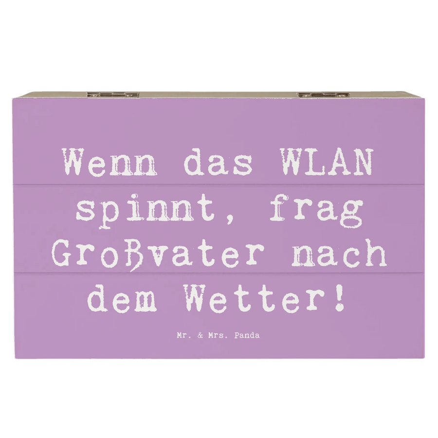 Entdecke die wunderschöne Holzkiste von Mr. & Mrs. Panda, die nicht nur eine Schatzkiste ist, sondern auch ein liebevolles Geschenk für Großväter! Mit dem herzlichen Spruch 'Wenn das WLAN spinnt, frag Großvater nach dem Wetter!' bringt sie ein Lächeln auf die Gesichter. Diese Kiste ist perfekt geeignet, um all die wertvollen Erinnerungen und kleinen Schätze zu bewahren, die Großväter im Laufe der Jahre gesammelt haben.