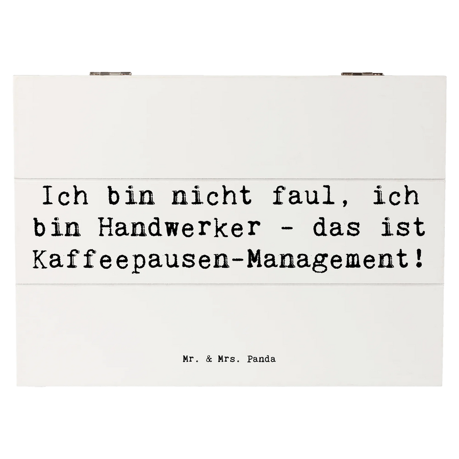 Eine wunderschöne Holzkiste von Mr. & Mrs. Panda – perfekt für alle, die das Handwerk mit einem Augenzwinkern lieben. Unsere Holzbox trägt den Spruch „Ich bin nicht faul, ich bin Handwerker - das ist Kaffeepausen-Management!“ und bringt Humor und Funktion in Einklang.