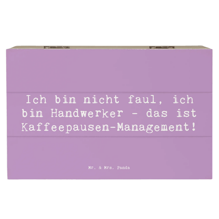 Eine wunderschöne Holzkiste von Mr. & Mrs. Panda – perfekt für alle, die das Handwerk mit einem Augenzwinkern lieben. Unsere Holzbox trägt den Spruch „Ich bin nicht faul, ich bin Handwerker - das ist Kaffeepausen-Management!“ und bringt Humor und Funktion in Einklang.