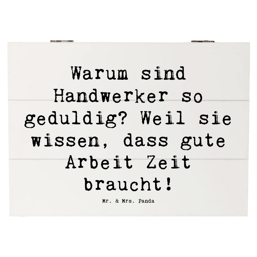 Holzkiste Spruch Warum sind Handwerker so geduldig? Weil sie wissen, dass gute Arbeit Zeit braucht! - 25 x 18 cm - Weiß