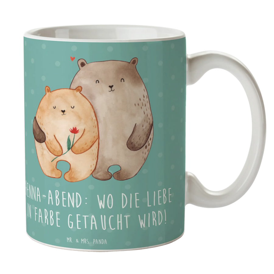 Entdecke die bezaubernde Henna-Abend Tasse von Mr. & Mrs. Panda, die nicht nur als Kaffeetasse oder Teetasse perfekt ist, sondern auch ein wunderschönes Hochzeitsgeschenk darstellt. Mit ihrem einzigartigen Design und dem liebevollen Slogan "Henna-Abend: Wo die Liebe in Farbe getaucht wird!" wird sie zu einem Highlight auf jedem Tisch und zaubert jedem ein Lächeln ins Gesicht. Diese Keramiktasse ist ideal für den romantischen Brunch nach der Trauung oder für einen gemütlichen Abend mit Freunden und Familie, die den besonderen Tag mit dir feiern.