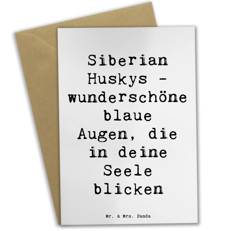Diese wunderschöne Grußkarte von Mr. & Mrs. Panda ist das perfekte Geschenk für Hundefans! Mit dem bezaubernden Motiv eines Siberian Huskys und dem Spruch "Siberian Huskys - wunderschöne blaue Augen, die in deine Seele blicken" begeistert sie gleich auf den ersten Blick.