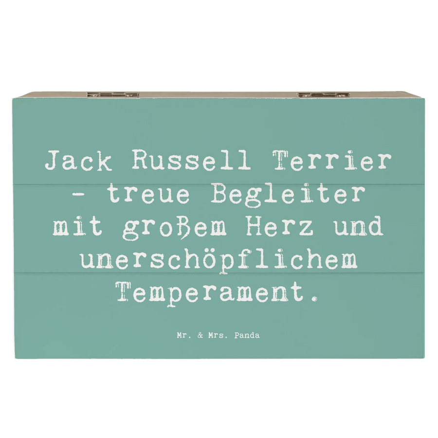 Der Spruch "Jack Russell Terrier - treue Begleiter mit großem Herz und unerschöpflichem Temperament" verleiht der Kiste eine persönliche Note und sorgt dafür, dass jeder Hundefreund mit einem Lächeln an die gemeinsamen Erlebnisse mit seinem treuen Begleiter denkt.