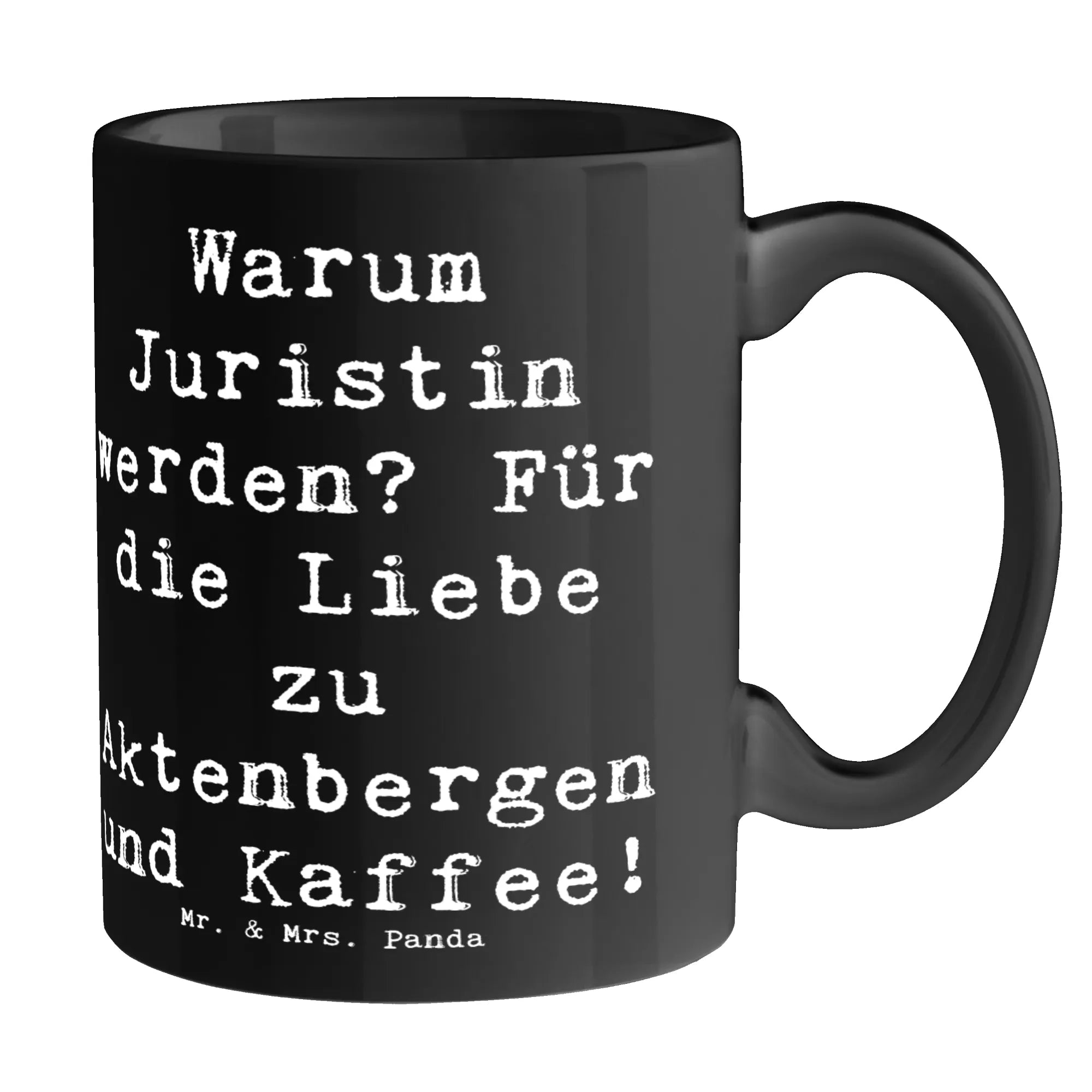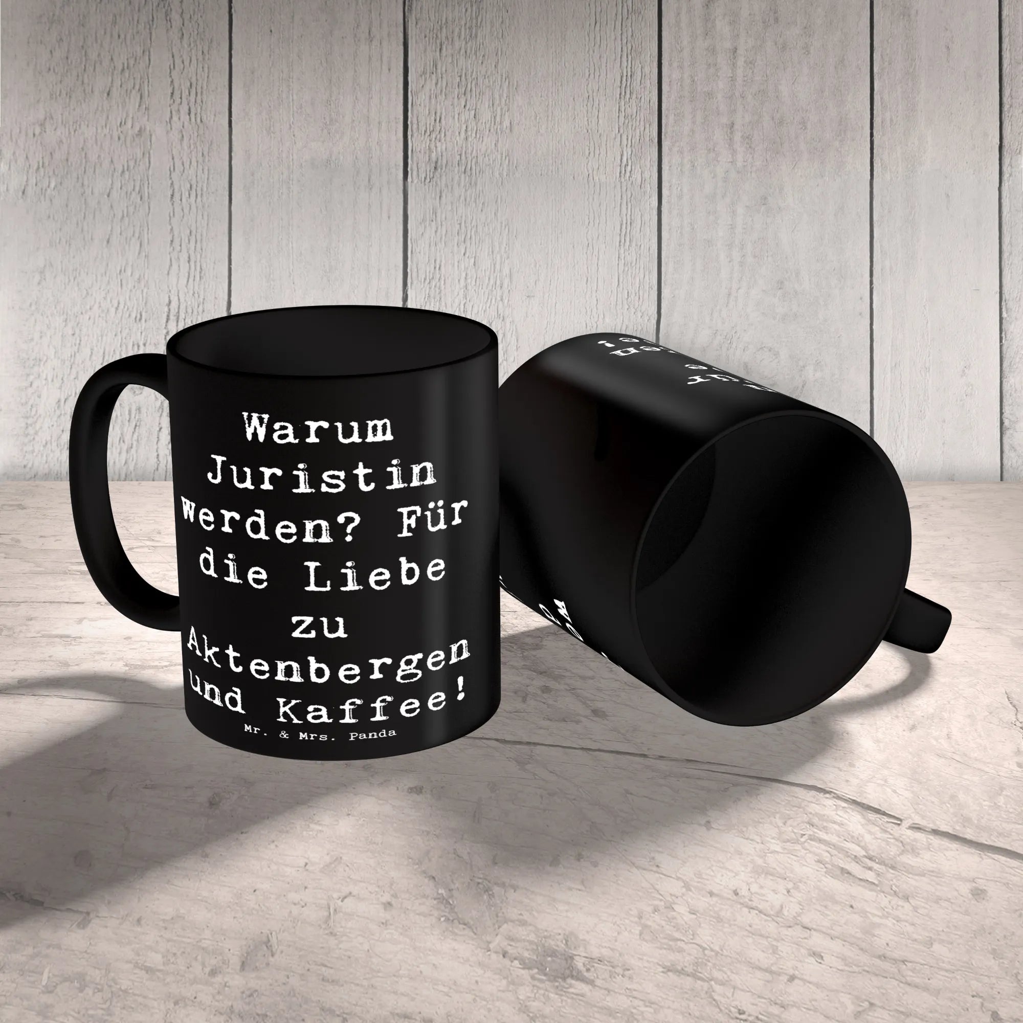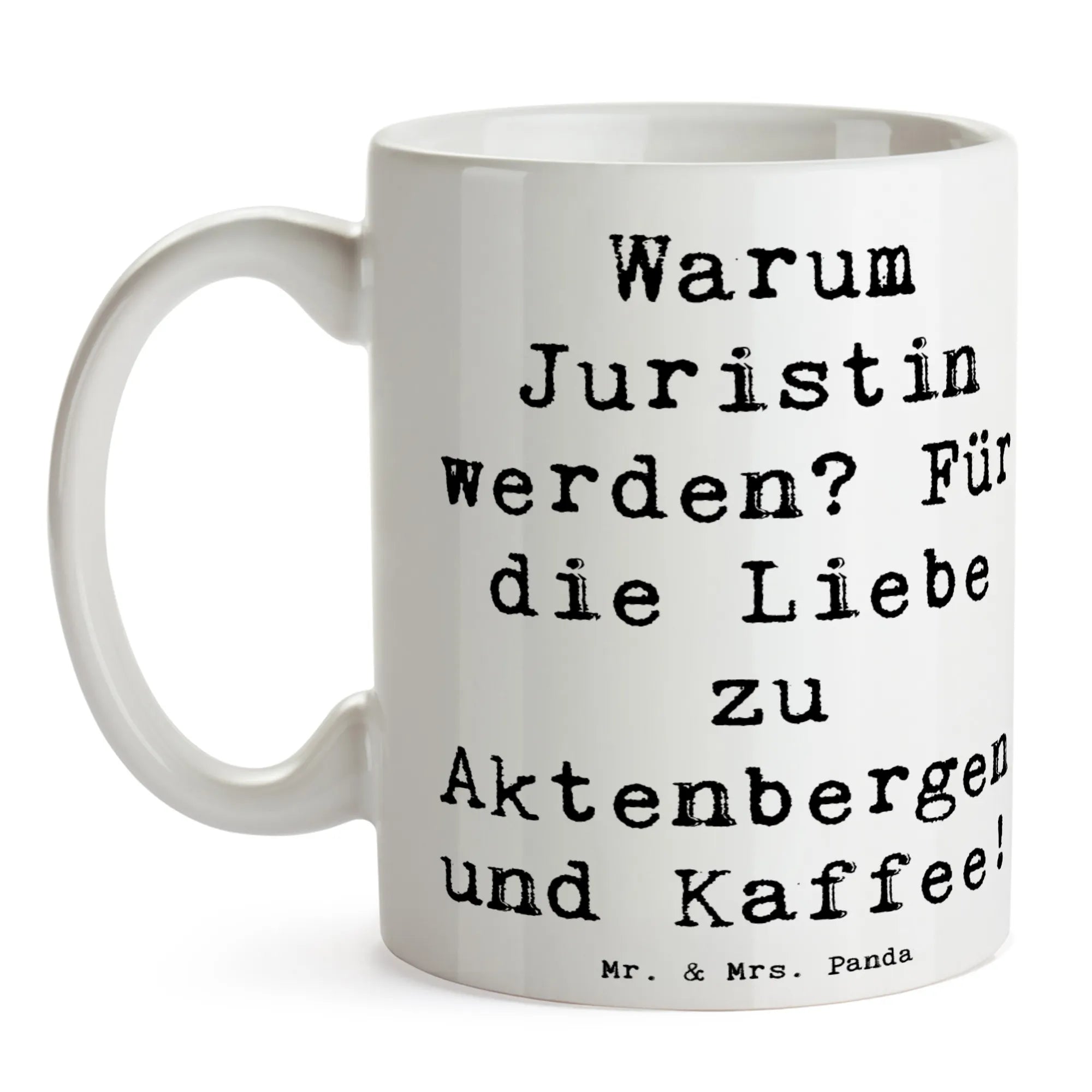 Entdecke die perfekte Tasse für alle Juristinnen! Unsere wunderschöne spülmaschinenfeste Keramiktasse von Mr. & Mrs. Panda, brillant bedruckt mit dem liebevollen Spruch 'Warum Juristin werden? Für die Liebe zu Aktenbergen und Kaffee!', ist das ideale Geschenk für alle, die im juristischen Bereich tätig sind oder dies anstreben.