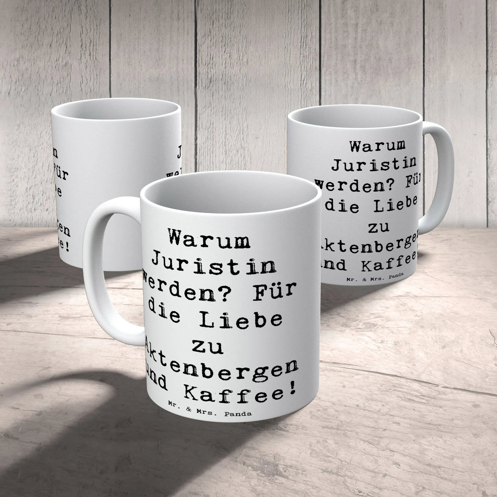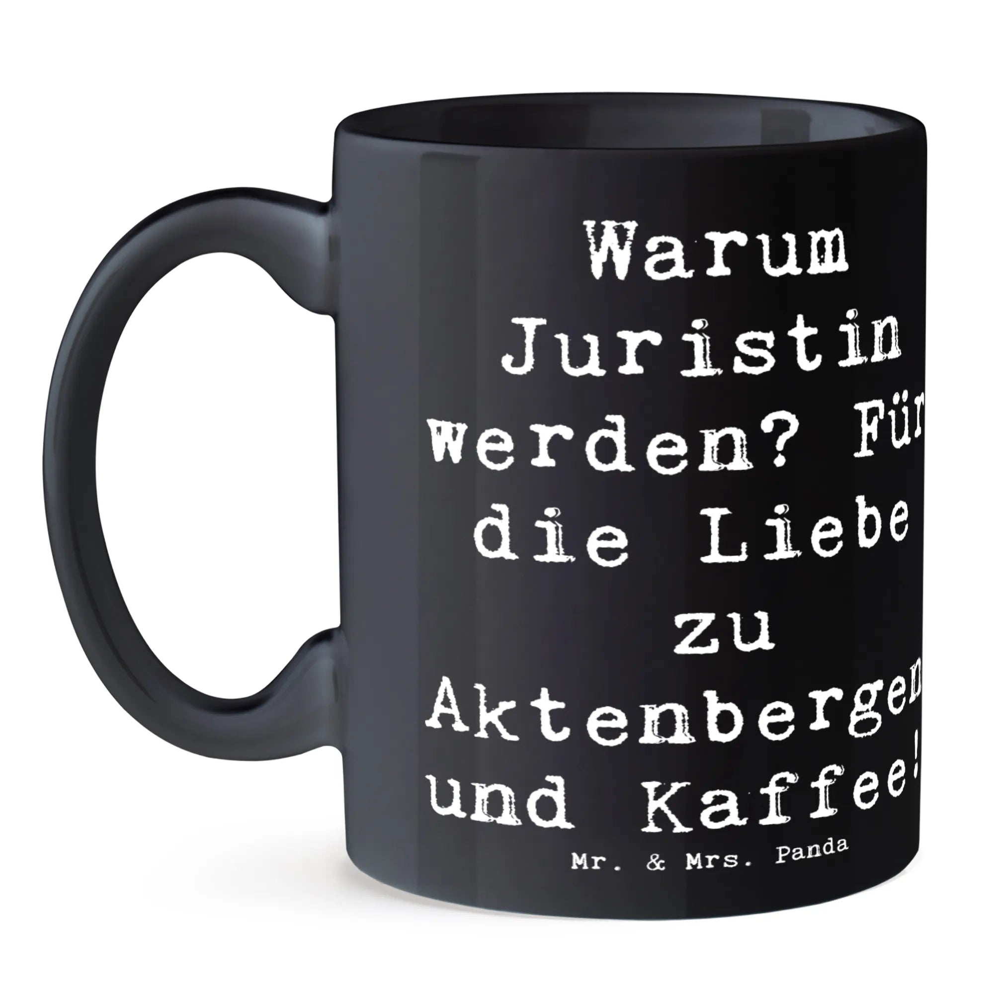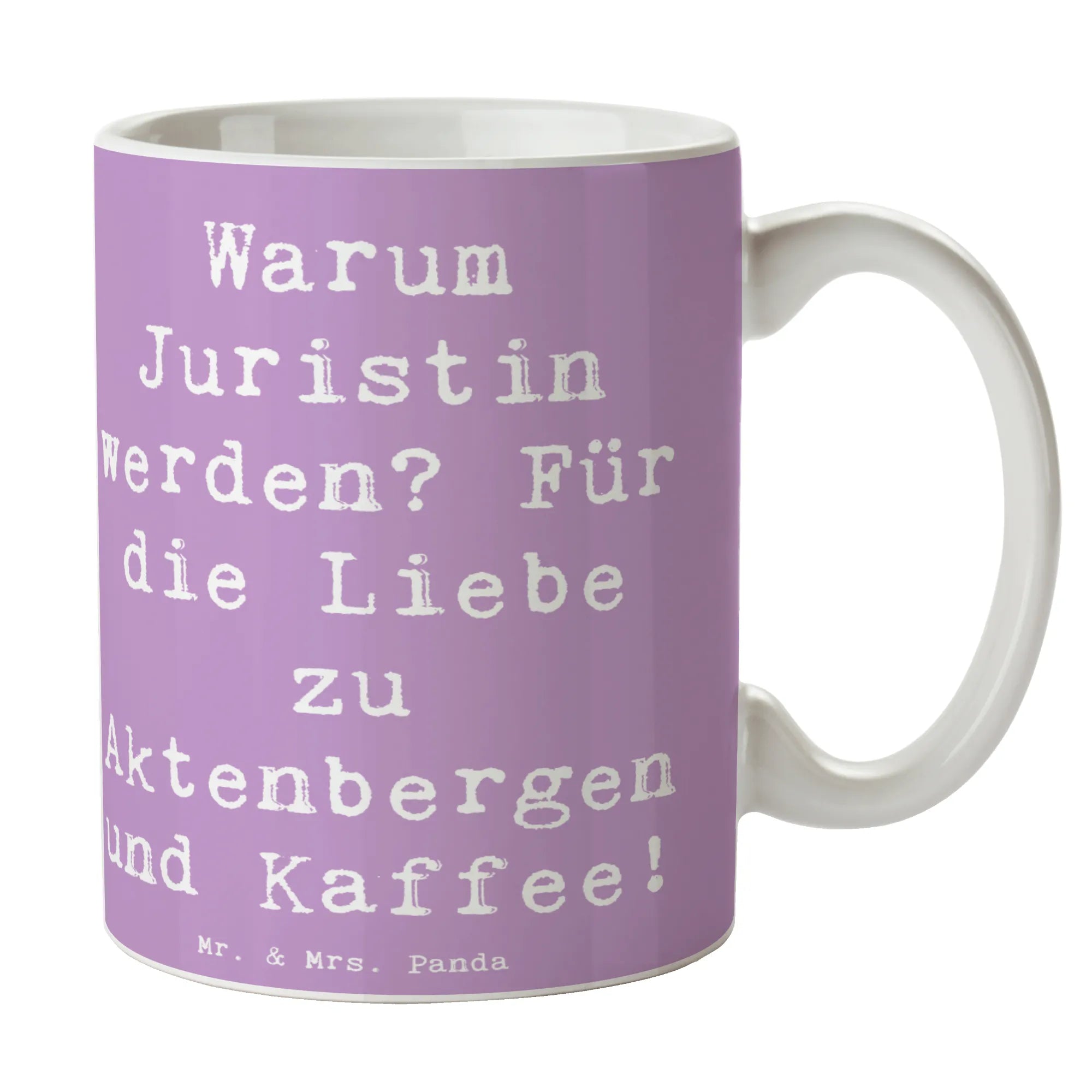 Entdecke die perfekte Tasse für alle Juristinnen! Unsere wunderschöne spülmaschinenfeste Keramiktasse von Mr. & Mrs. Panda, brillant bedruckt mit dem liebevollen Spruch 'Warum Juristin werden? Für die Liebe zu Aktenbergen und Kaffee!', ist das ideale Geschenk für alle, die im juristischen Bereich tätig sind oder dies anstreben.