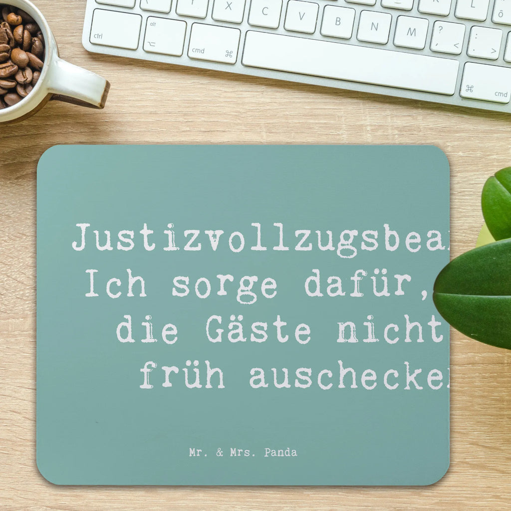 Wenn Du auf der Suche nach einem einzigartigen und praktischen Geschenk für einen Justizvollzugsbeamten bist, dann ist das Mauspad "Justizvollzugsbeamter: Ich sorge dafür, dass die Gäste nicht zu früh auschecken!" von Mr. & Mrs. Panda genau das Richtige! Dieses liebevoll gestaltete Mauspad aus der Kollektion "Berufe" ist nicht nur ein echter Hingucker, sondern auch äußerst funktional. Es bringt ein wenig Humor in den Arbeitsalltag und macht jede Schreibtischarbeit noch angenehmer.