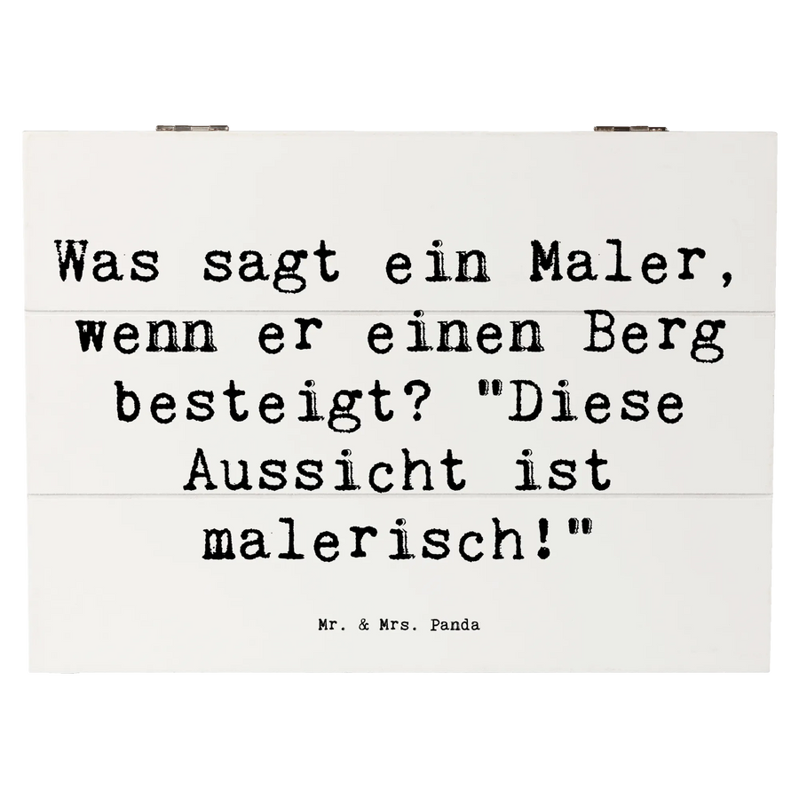 Holzkiste Spruch Was sagt ein Maler, wenn er einen Berg besteigt? "Diese Aussicht ist malerisch!" - 25 x 18 cm - Weiß