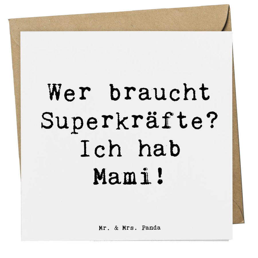 Die Vorderseite ist romantisch mit dem Spruch "Wer braucht Superkräfte? Ich hab Mami!" verziert, der die Bedeutung der Mütter auf eine charmante Art und Weise unterstreicht. Die Innenseite der Karte ist blanko gehalten, sodass Du sie ganz individuell beschriften kannst, ganz nach Deinen eigenen Worten der Wertschätzung und Dankbarkeit.