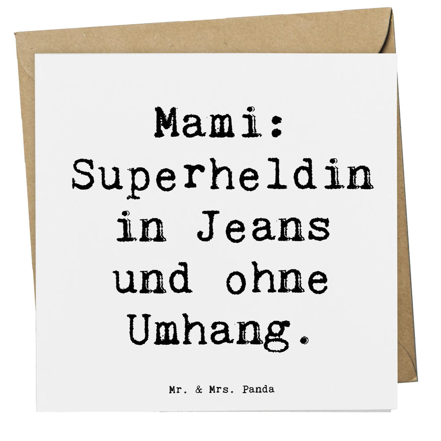Die hochwertige Verarbeitung und das liebevolle Design machen diese Karte zu einem ganz besonderen Hingucker. Auf der Vorderseite prangt der liebevolle Spruch "Mami: Superheldin in Jeans und ohne Umhang." In Kombination mit einer zauberhaften Illustration trägt der Spruch dazu bei, die besondere Rolle von Müttern zu würdigen. Mütter sind für uns nicht nur die besten Köche, sondern auch die besten Ratgeberinnen und meist die ersten Helden in unserem Leben.