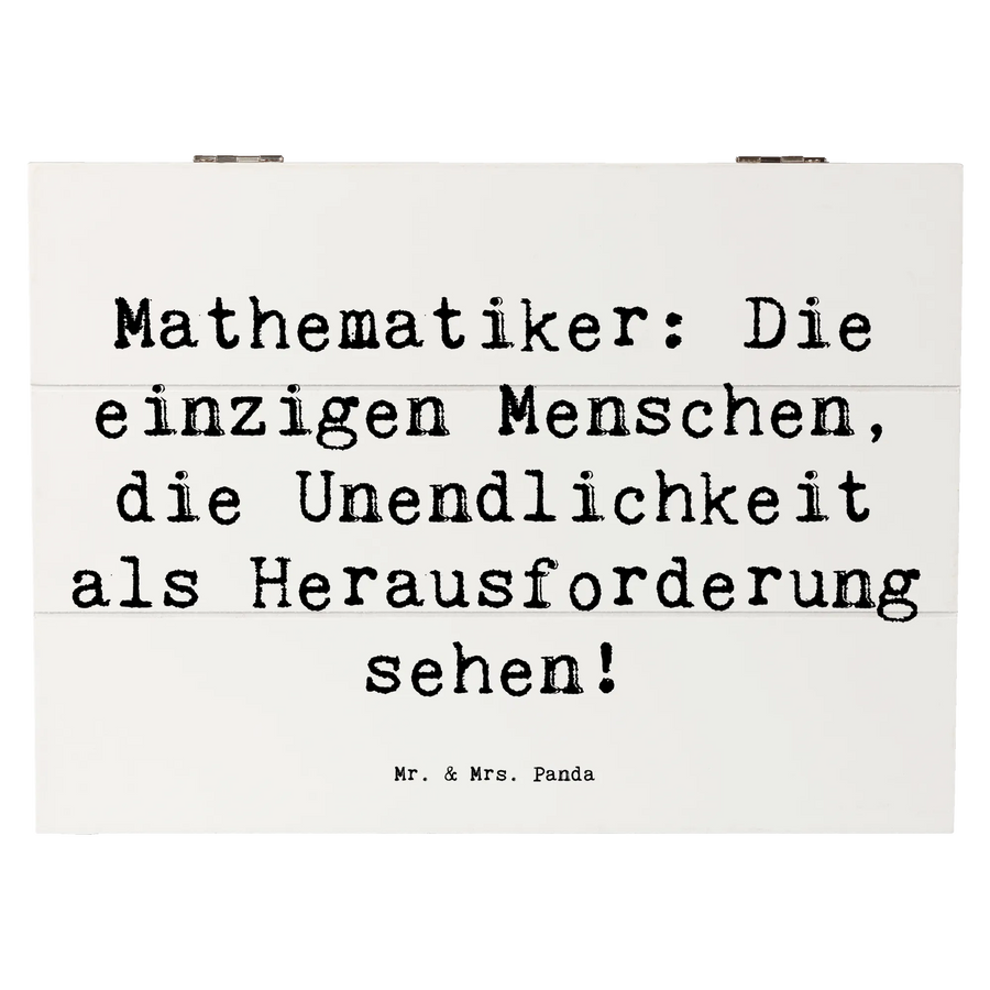 Entdecke die wunderschöne Holzkiste von Mr. & Mrs. Panda, die nicht nur praktisch ist, sondern auch das Herz eines jeden Mathematikers höherschlagen lässt! Diese Erinnerungskiste ist das perfekte Geschenk für alle, die Mathe lieben oder in diesem Bereich arbeiten. Mit dem förderlichen Slogan: "Mathematiker: Die einzigen Menschen, die Unendlichkeit als Herausforderung sehen!" wird diese Kiste zu einem sensationellen Hingucker.