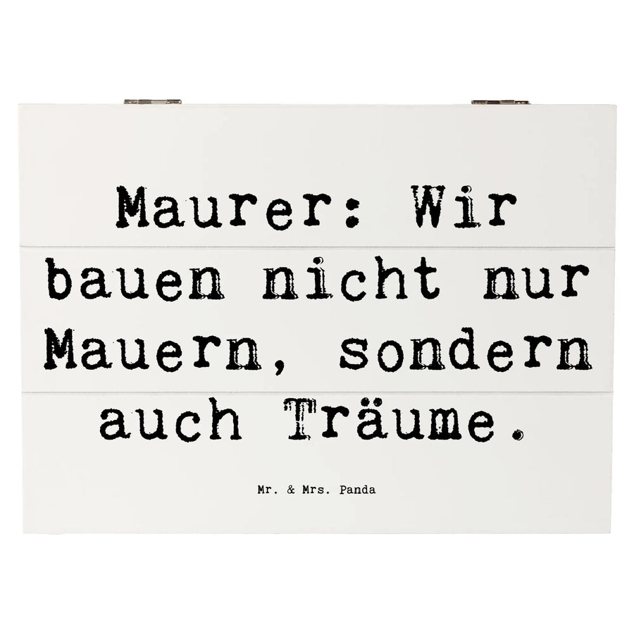Die Flächen der Kiste sind liebevoll mit dem Spruch "Maurer: Wir bauen nicht nur Mauern, sondern auch Träume." verziert. Diese Worte sind perfekt für jeden Maurer und dessen Leidenschaft für den Beruf.