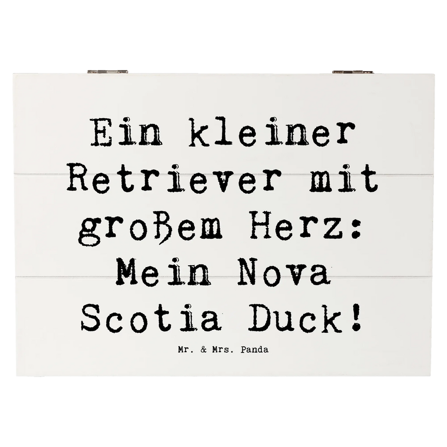 Entdecke die zauberhafte Holzkiste mit dem Motiv "Nova Scotia Duck" aus der Hunderassen-Kollektion von Mr. & Mrs. Panda! Diese wunderschöne Kiste ist nicht nur ein perfekter Aufbewahrungsort für all deine wertvollen Erinnerungen, sondern auch ein ganz besonderes Geschenk für alle Hundeliebhaber. Mit den liebevollen Illustrationen und dem charmanten Spruch "Ein kleiner Retriever mit großem Herz: Mein Nova Scotia Duck!" zaubert sie jedem ein Lächeln ins Gesicht.