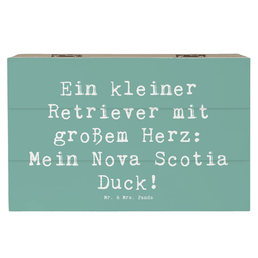 Entdecke die zauberhafte Holzkiste mit dem Motiv "Nova Scotia Duck" aus der Hunderassen-Kollektion von Mr. & Mrs. Panda! Diese wunderschöne Kiste ist nicht nur ein perfekter Aufbewahrungsort für all deine wertvollen Erinnerungen, sondern auch ein ganz besonderes Geschenk für alle Hundeliebhaber. Mit den liebevollen Illustrationen und dem charmanten Spruch "Ein kleiner Retriever mit großem Herz: Mein Nova Scotia Duck!" zaubert sie jedem ein Lächeln ins Gesicht.