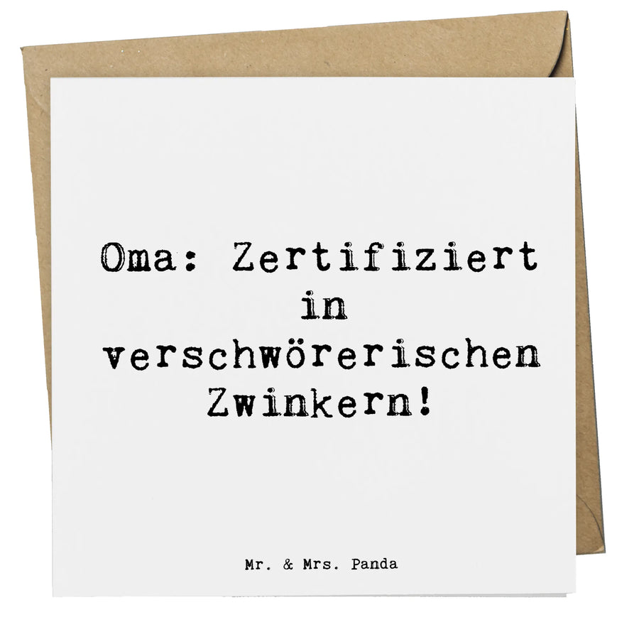 Die Deluxe Karte "Oma: Zertifiziert in verschwörerischen Zwinkern!" aus der Familie & Verwandte Kollektion von Mr. & Mrs. Panda ist das perfekte Geschenk für Deine geliebte Oma. Sie ist eine wahre Quelle der Liebe, Fürsorge und Weisheit in unserer Familie.