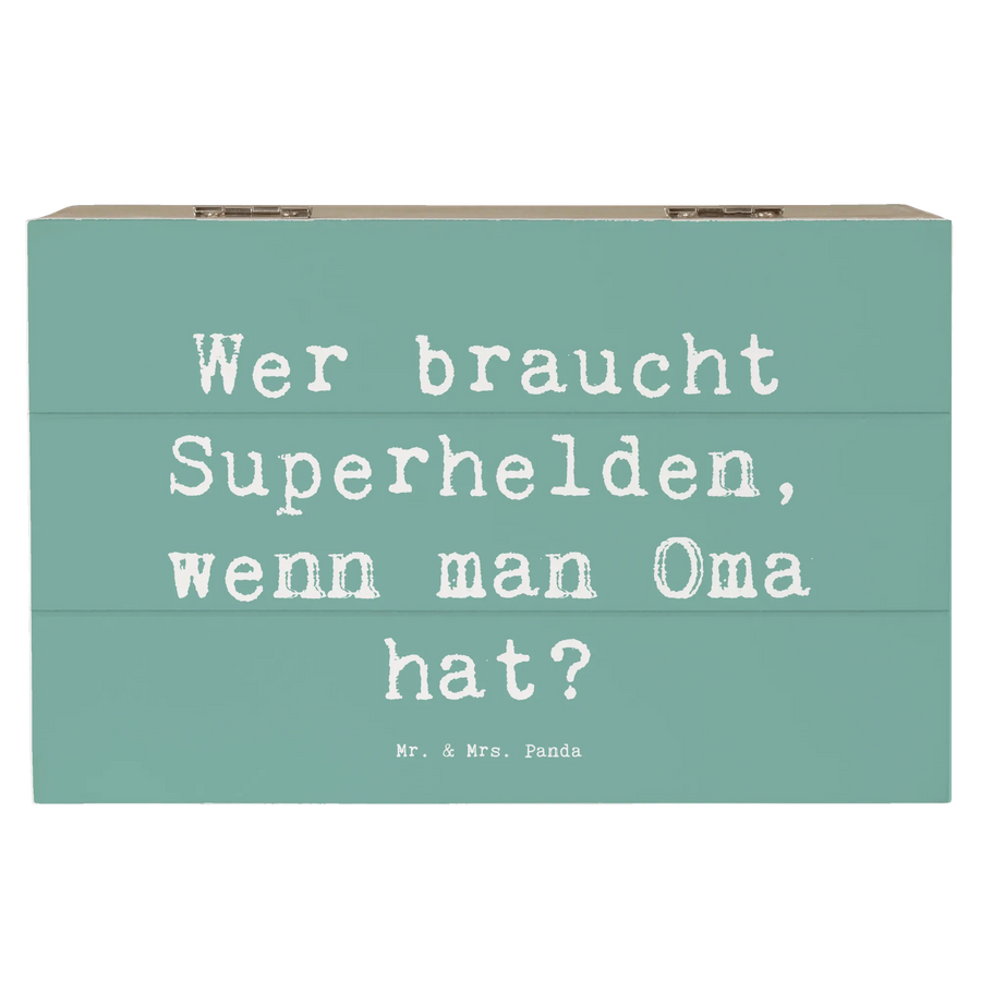 Mit dem Slogan 'Wer braucht Superhelden, wenn man Oma hat?' wird diese Kiste zum Ausdruck Deiner Wertschätzung für all die kleinen und großen Dinge, die Deine Oma für Dich tut. Du kannst sie als Aufbewahrungsbox für Fotos, Briefe, kleine Andenken oder sogar als Dekokiste für das Wohnzimmer verwenden.