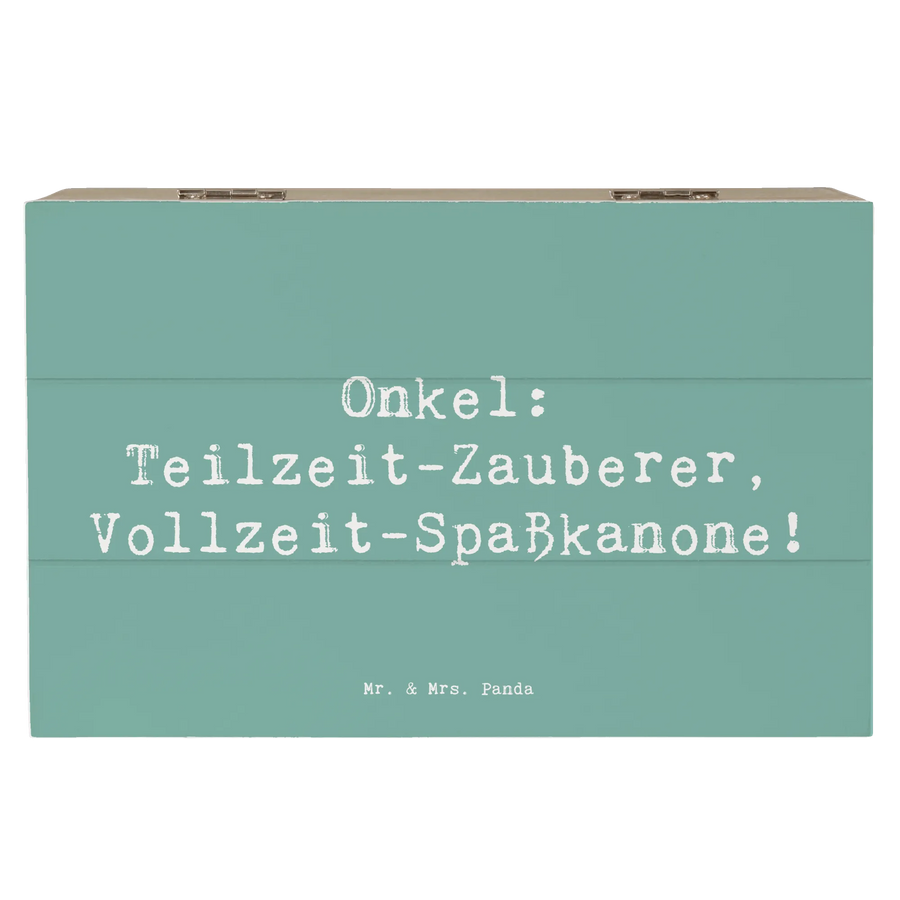 Die wunderschöne Holzkiste von Mr. & Mrs. Panda ist das perfekte Geschenk für den Onkel – einen wichtigen Teil unserer Familie! Mit dem liebevollen Slogan "Onkel: Teilzeit-Zauberer, Vollzeit-Spaßkanone!" wird diese Kiste schnell zu einem besonderen Highlight bei jeder Familienfeier. Sie ist nicht nur ein wahrer Blickfang, sondern bietet auch genügend Platz für all die tollen Erinnerungen, die Du zusammen mit Deinem Onkel gesammelt hast. Ob scrapbooking, Fotos, Briefe oder kleine Schätze aus der Kindheit – alles findet seinen perfekten Platz in dieser stilvollen Erinnerungskiste.