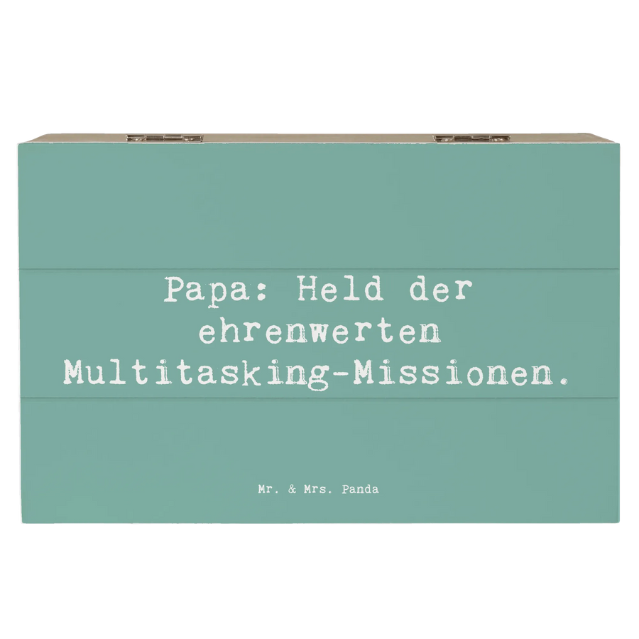 Diese wunderschöne Holzkiste von Mr. & Mrs. Panda ist das perfekte Geschenk für alle Väter, die ihre Erinnerungen bewahren möchten. Mit dem charmanten Spruch 'Papa: Held der ehrenwerten Multitasking-Missionen.' wird jede Aufbewahrung zu einer liebevollen Hommage an die Rolle des Vaters.
