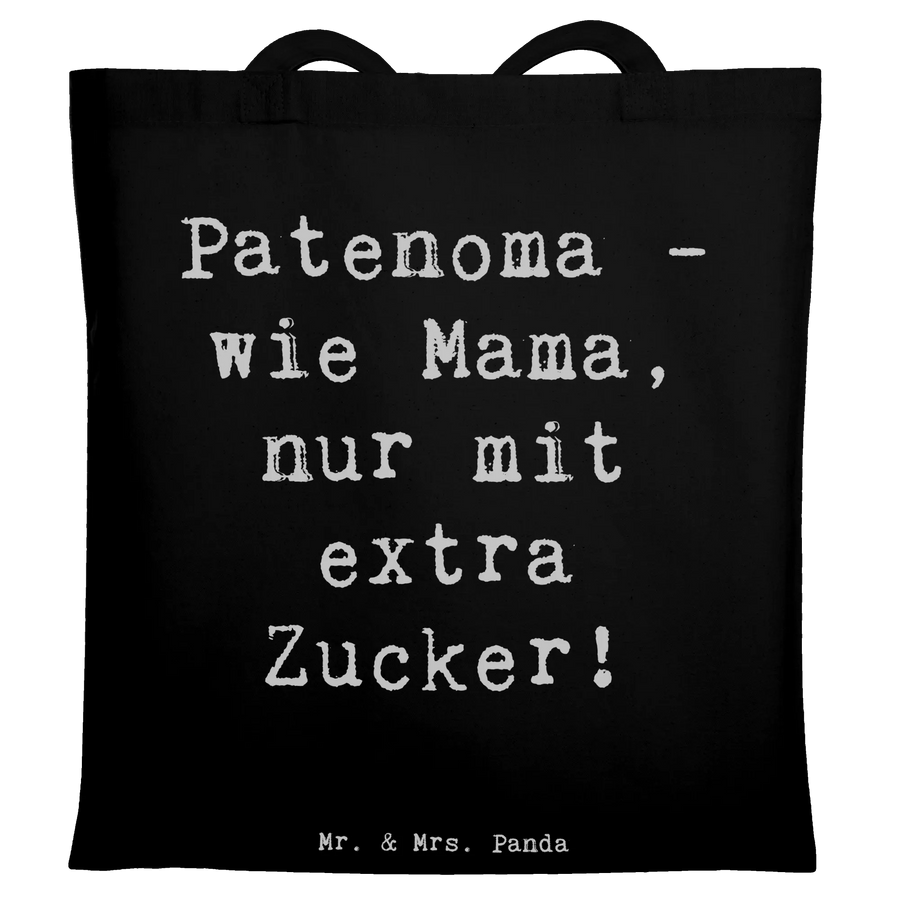 Entdecke die charmante Tragetasche "Patenoma" von Mr. & Mrs. Panda – das ideale Geschenk für alle Großmütter, Patenomas und Frauen, die eine besondere Rolle in der Familie spielen. Diese hochwertige Tragetasche ist nicht nur praktisch für den täglichen Gebrauch, sei es zum Einkaufen oder für einen Trip an den Strand, sondern bringt auch einen liebevollen Spruch mit: „Patenoma - wie Mama, nur mit extra Zucker!“.