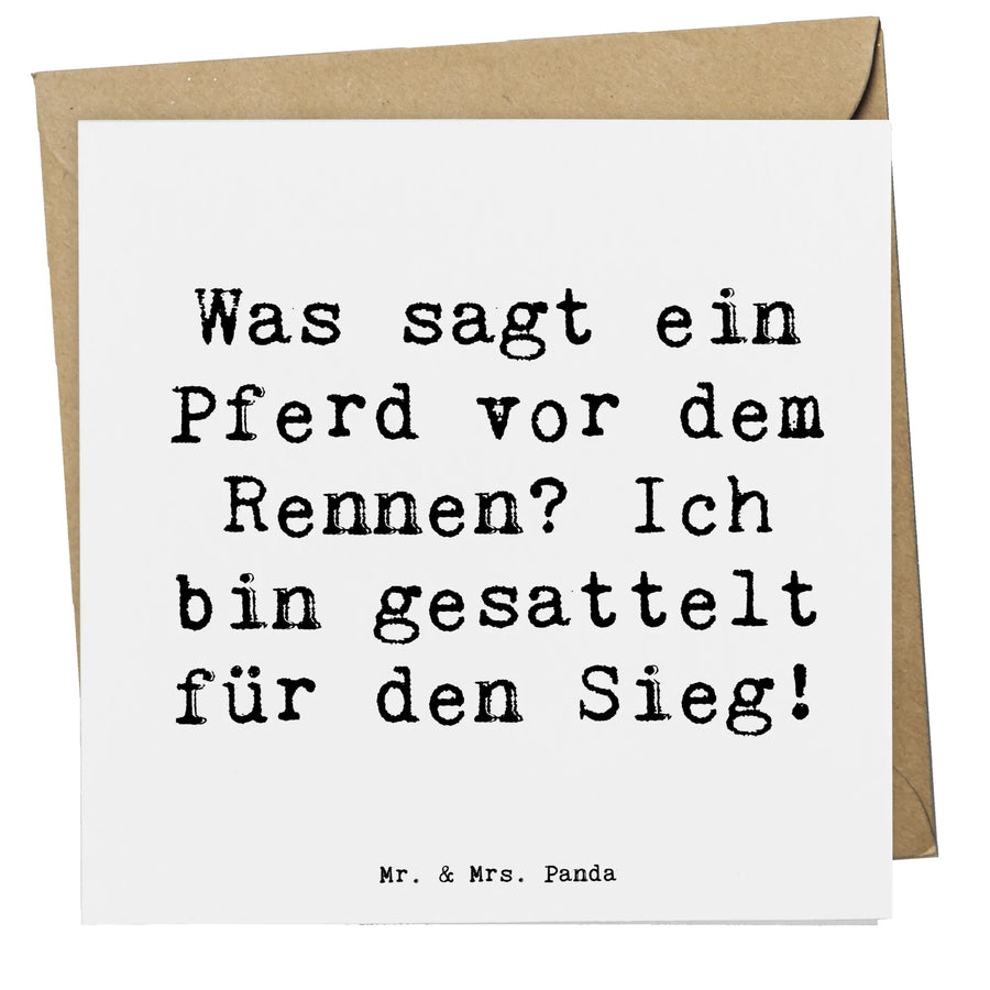 Du suchst nach einem besonderen Geschenk für einen Sportliebhaber? Dann ist die Deluxe Karte Pferderennen von Mr. & Mrs. Panda genau das Richtige! Mit dem humorvollen Spruch "Was sagt ein Pferd vor dem Rennen? Ich bin gesattelt für den Sieg!" zauberst du garantiert ein Lächeln auf das Gesicht des Beschenkten.