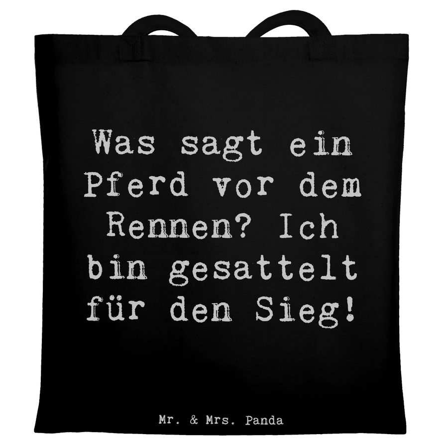 Suchst du die perfekte Tragetasche für Pferdefans und Sportfreunde? Unsere Tragetasche „Pferderennen" von Mr. & Mrs. Panda vereint Humor, Herz und Alltagstauglichkeit. Mit dem frechen Spruch „Was sagt ein Pferd vor dem Rennen? Ich bin gesattelt für den Sieg!" bringst du gute Laune zum Einkaufen, an den Strand oder in die Uni. 🐴