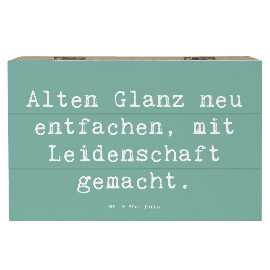 Diese wunderschöne Holzkiste von Mr. & Mrs. Panda ist nicht nur ein einfacher Aufbewahrungsort, sondern ein kleines Kunstwerk, das die Leidenschaft und das handwerkliche Können von Polsterinnen feiert. Mit ihrem liebevoll gestalteten Motiv und dem inspirierenden Spruch "Alten Glanz neu entfachen, mit Leidenschaft gemacht" ist diese Erinnerungsbox ein perfektes Geschenk für jede Gelegenheit.