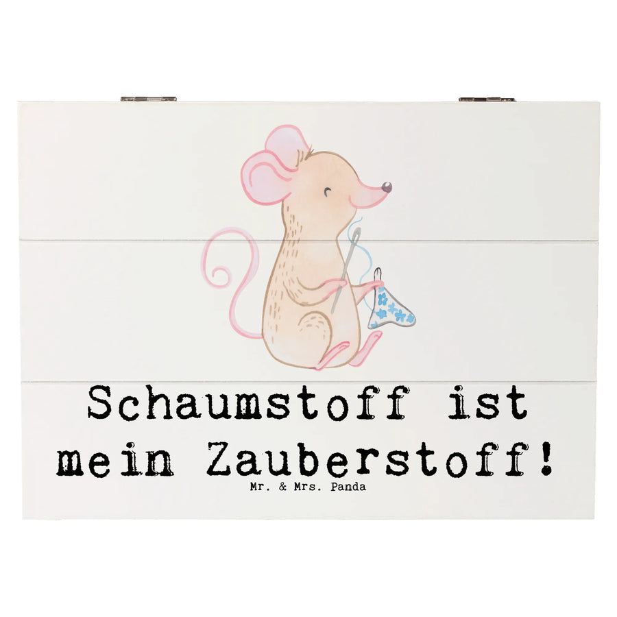 Die robuste Holzfaser sorgt dafür, dass die Kiste stabil und langlebig ist, sodass sie deinen Kostbarkeiten auch über viele Jahre hinweg Schutz bieten kann. Die Arbeit einer Polsterin ist bekannt für Geduld, Präzision und kreatives Talent. Diese Holzkiste ist mit dem süßen Motto 'Schaumstoff ist mein Zauberstoff!' versehen, was sie zu einem perfekten Geschenk für jeden macht, der in diesem Handwerk tätig ist oder sich dafür interessiert.