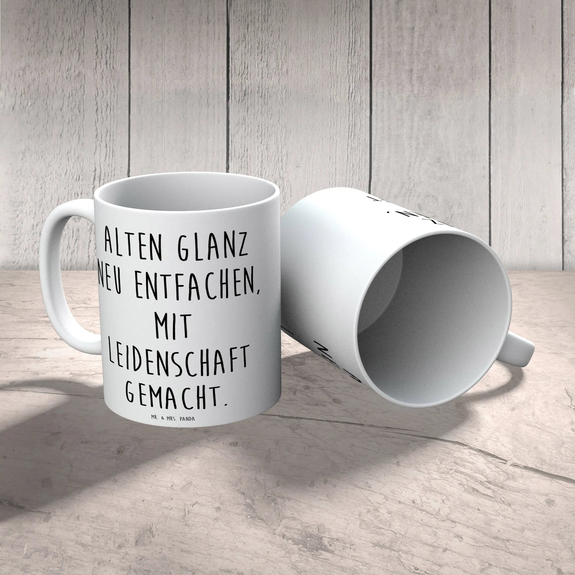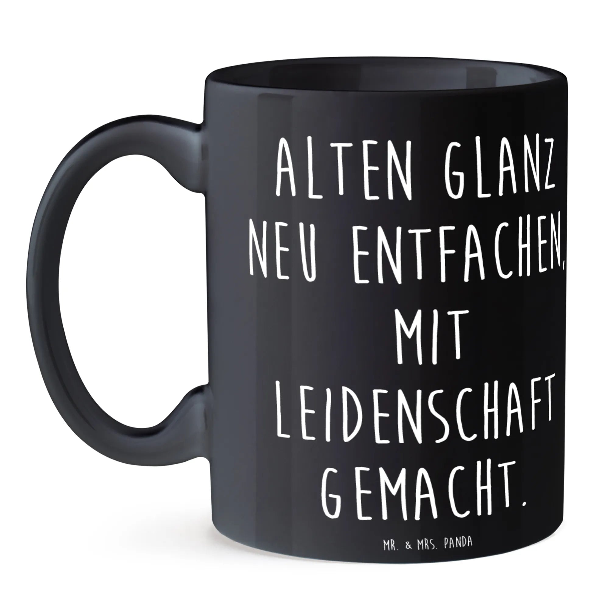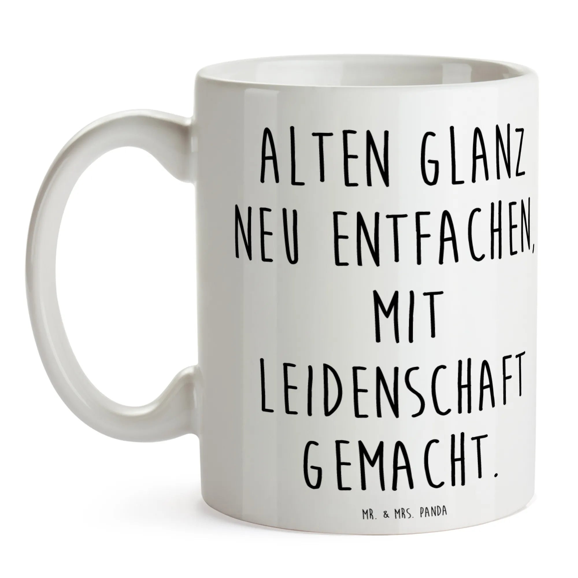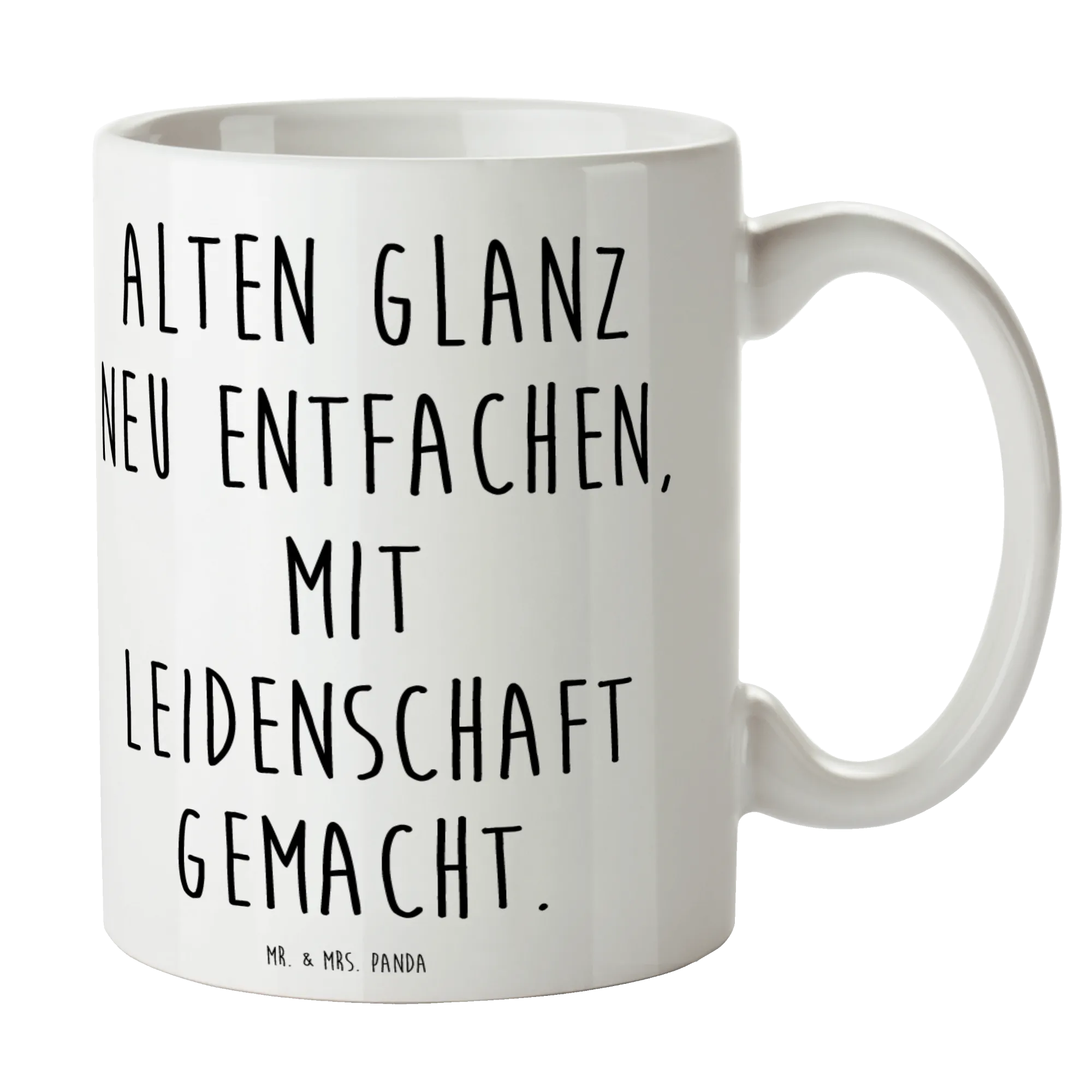 Die Tasse 'Polsterin' von Mr. & Mrs. Panda ist das perfekte Geschenk für alle Handwerksbegeisterten und kreativen Köpfe, die in der Welt der Polsterarbeiten zuhause sind. Mit ihrem strahlenden Design und dem liebevollen Slogan 'Alten Glanz neu entfachen, mit Leidenschaft gemacht.' vermittelt diese Tasse nicht nur ein Gefühl von Handwerkskunst, sondern auch von Wertschätzung für die Liebe, die in jede restaurierte Couch oder jeden aufgearbeiteten Sessel fließt.