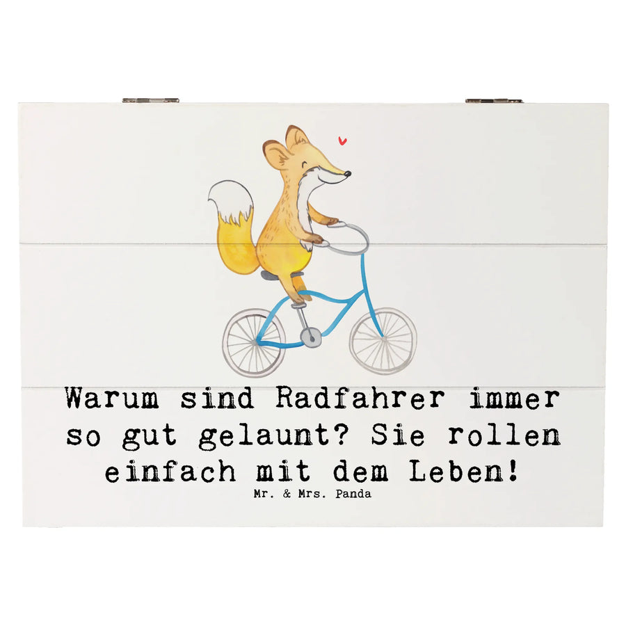 Mr. & Mrs. Panda Holzkiste Radsport – die perfekte Geschenkidee für alle Fahrradfans und Sportler. Bedruckt mit dem liebevollen Radsport-Motiv und dem Spruch „Warum sind Radfahrer immer so gut gelaunt? Sie rollen einfach mit dem Leben!“ vereint diese Aufbewahrungsbox Holzpraktische Funktion und charmantes Design.