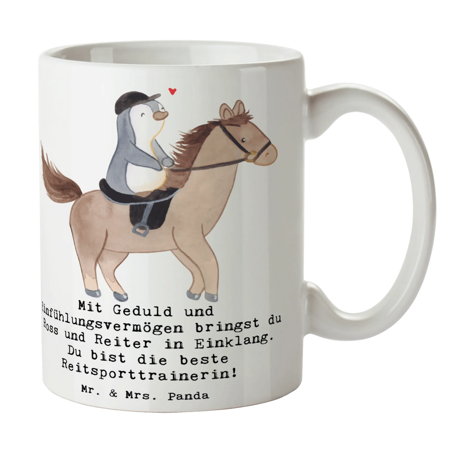 Bist du auf der Suche nach einem ganz besonderen Geschenk für deine Reitsport-Trainerin? Dann ist die wunderschöne Tasse von Mr. & Mrs. Panda genau das Richtige für dich! Diese kreative Kaffeetasse begeistert nicht nur durch ihr ansprechendes Design, sondern auch durch den inspirierenden Spruch: "Mit Geduld und Einfühlungsvermögen bringst du Ross und Reiter in Einklang. Du bist die beste Reitsporttrainerin!" Damit zeigst du deiner Trainerin, wie sehr du ihre harte Arbeit und Hingabe schätzt.