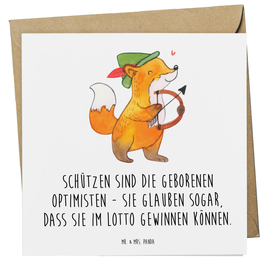 Die Deluxe Karte Schütze aus der liebevollen Sternzeichen-Kollektion von Mr. & Mrs. Panda ist das perfekte Geschenk für all die Freunde und Familienmitglieder, die im Sternzeichen Schütze geboren sind. Ob zu Geburtstagen, Hochzeiten oder einfach nur so als kleine Überraschung, diese Karte bringt ein Lächeln auf die Lippen! Mit einem charmanten Motiv und dem Motto "Schützen sind die geborenen Optimisten - sie glauben sogar, dass sie im Lotto gewinnen können", ist diese Karte ein echter Hingucker und dazu noch sehr persönlich.